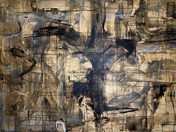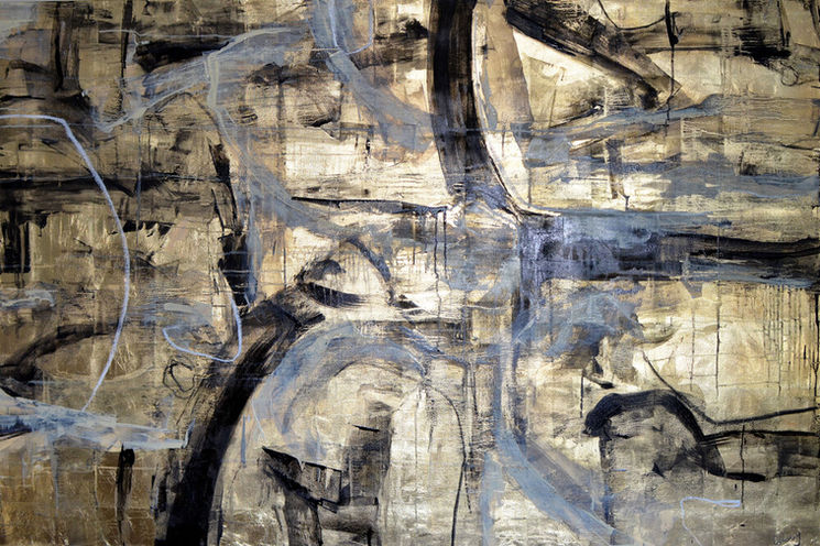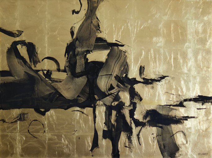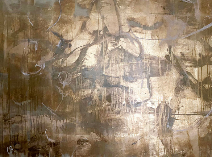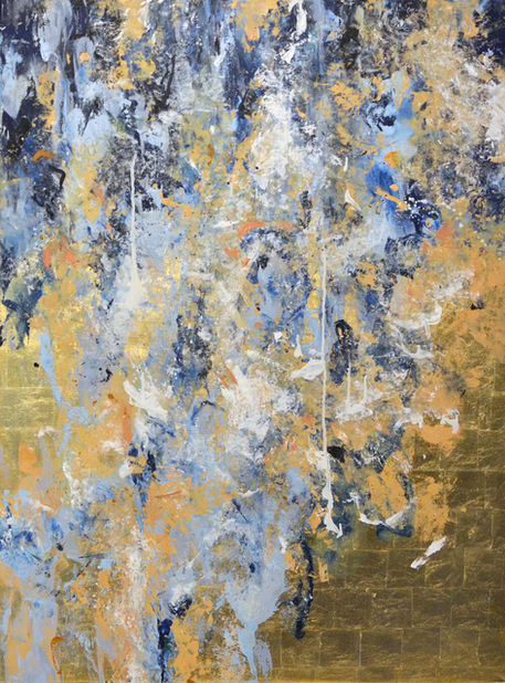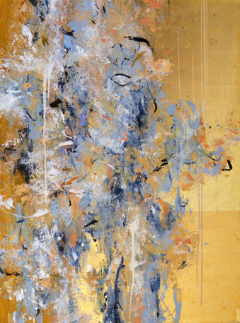 Her practice is expressed through paintings of an abstract form, where gold leaf often dominates.